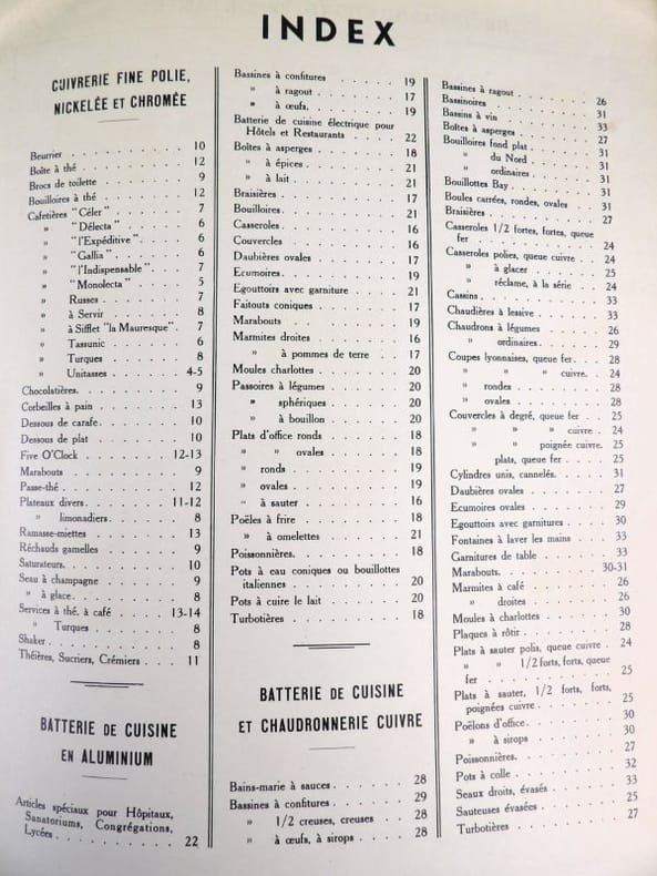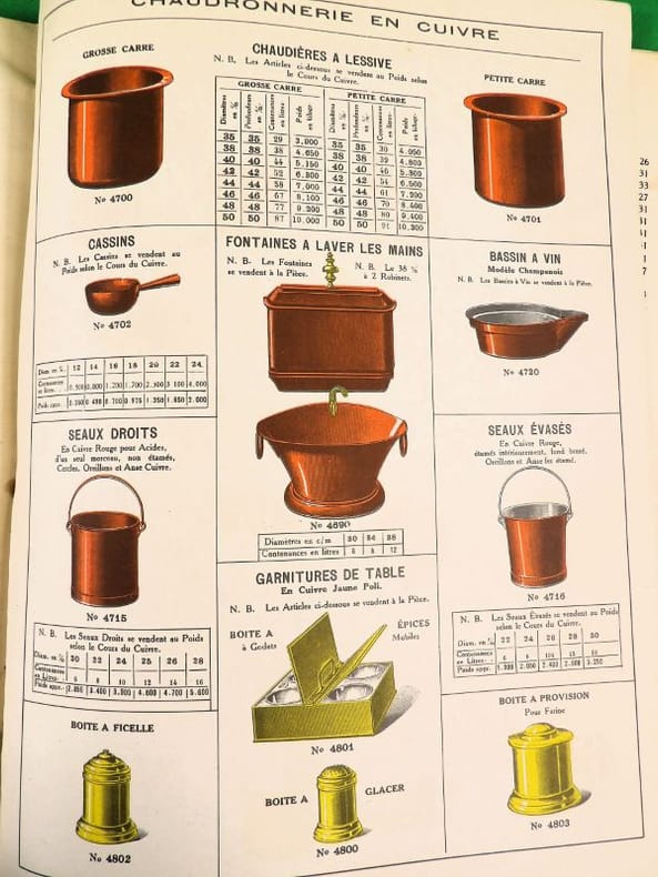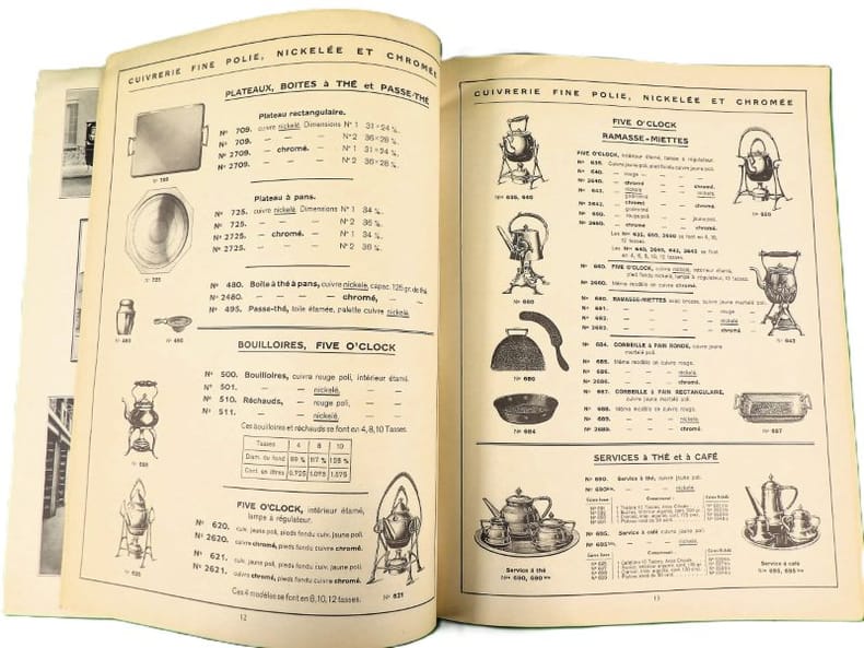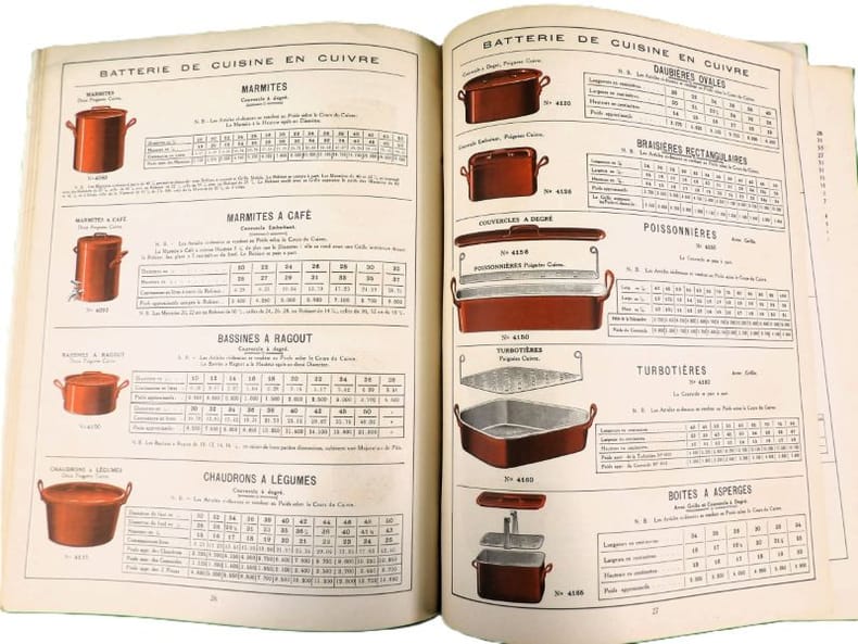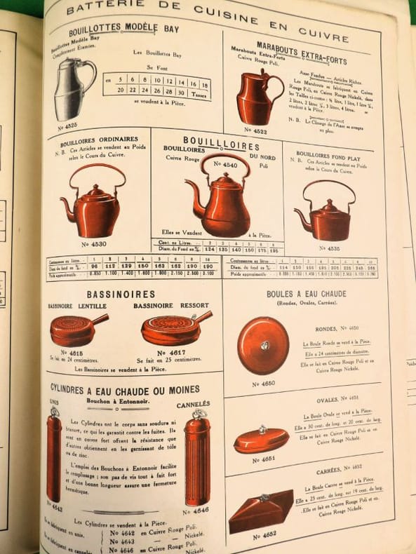 Catalogue pour Objets de Table et de Cuisine très bien finis, en cuivre nickelé, nickel plaqué et nickel pur. Catalogue of highly finished, nickel plated, nickel and brass nickelled Table Furnishing & Kitchen Goods. [SUPERBE CATALOGUE 1900 ; USTENSILES DE CUISINE, ARTS DE LA TABLE ET JOUETS].