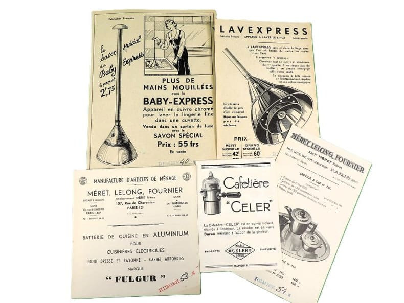 Catalogue exceptionnel tout autant par l'exhaustivité de son contenu (on peut noter une étonnante section consacrée aux jouets et ustensiles de cuisine pour enfants) que par son remarquable état de fraîcheur. No place (Germany ?), Unknown publisher, 1901, Editor's binding. Remarkable fresh condition and rarity. 14 x 11 inch. Publisher's binding signed Hübel and Denck (Leipzig, Germany) in full red cloth, smooth muted spine, first cover titled in English and French and decorated with a maid, in relief and in color, carrying a tray with silver-plated utensils. 202 paginated pages, 5 leaves, 9 leaves, XI, 28 pages, 6 leaves. Richly illustrated. French text. Bilingual title on front cover. Extremely rare (no other copies have been found). An exceptional catalog, as much for the completeness of its contents (including an astonishing section devoted to children's toys and kitchen utensils) as for its remarkable fresh condition. - Clients Livre Rare Book : Les frais postaux indiqués sont ceux pour la France métropolitaine et la Corse, pour les autres destinations, merci de contacter la librairie pour connaître le montant des frais d'expédition, merci de votre compréhension. Livre Rare Book Customers : The shipping fees indicated are only for France, if you want international shipping please contact us before placing your order, thank you for your understanding. - Frais de port : -Colissimo France 11 € -Colissimo International (Union Européenne + Suisse : 23 €) (Reste du Monde : 55 €)